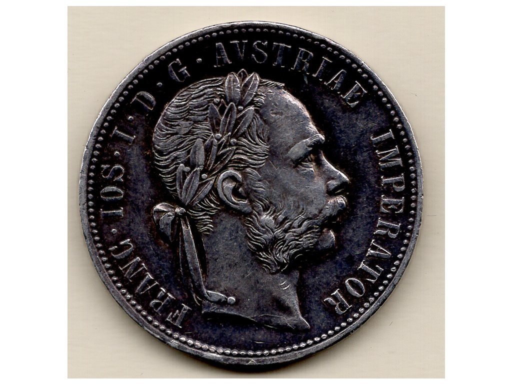 Tento stříbrný zlatník (1 florin) z roku 1877 byl ražen bez značky mincovny (b.zn.) během vlády císaře Františka Josefa I., v období tzv. spolkové měny, kdy byl florin (gulden) hlavní měnovou jednotkou habsburské monarchie. Averz nese portrét panovníka s vavřínovým věncem a legendou FRANC IOS I D G AVSTRIAE IMPERATOR, zatímco reverz zobrazuje korunovaného dvouhlavého orla s erbem a textem označujícím císařské tituly, rok ražby a nominální hodnotu 1 FL.