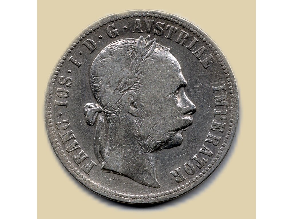 Tento stříbrný zlatník (1 florin) z roku 1883 byl ražen bez značky mincovny (b.zn.) během vlády císaře Františka Josefa I., v období tzv. spolkové měny, kdy byl florin (gulden) hlavní měnovou jednotkou habsburské monarchie. Averz nese portrét panovníka s vavřínovým věncem a legendou FRANC IOS I D G AVSTRIAE IMPERATOR, zatímco reverz zobrazuje korunovaného dvouhlavého orla s erbem a textem označujícím císařské tituly, rok ražby a nominální hodnotu 1 FL.