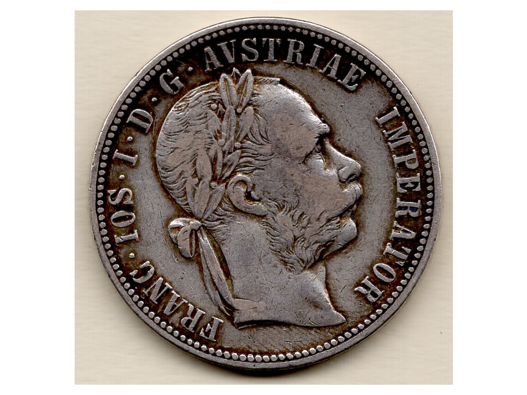 Tento stříbrný zlatník (1 florin) z roku 1884 byl ražen bez značky mincovny (b.zn.) během vlády císaře Františka Josefa I., v období tzv. spolkové měny, kdy byl florin (gulden) hlavní měnovou jednotkou habsburské monarchie. Averz nese portrét panovníka s vavřínovým věncem a legendou FRANC IOS I D G AVSTRIAE IMPERATOR, zatímco reverz zobrazuje korunovaného dvouhlavého orla s erbem a textem označujícím císařské tituly, rok ražby a nominální hodnotu 1 FL.