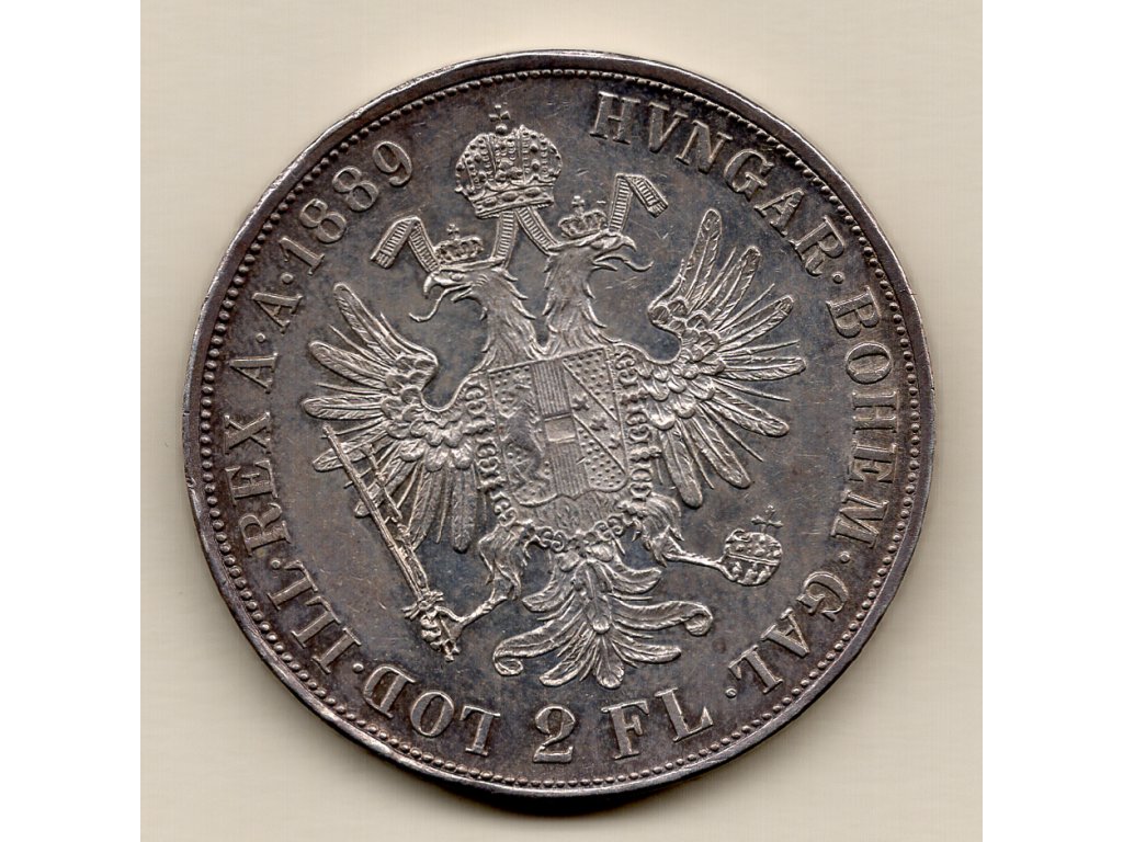 František Josef I. vládl Rakouské monarchii v letech 1848–1916 a patří mezi nejdéle panující evropské vladaře. Dvouzlatník z roku 1889 pochází z období stabilní měnové politiky habsburské říše, kdy stříbrný florén představoval klíčovou oběžnou minci používanou při významnějších platbách. Vysoká ryzost stříbra a precizní ražba z vídeňské mincovny zaručují minci nejen estetickou hodnotu, ale i dlouhodobou trvanlivost.