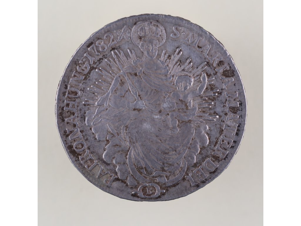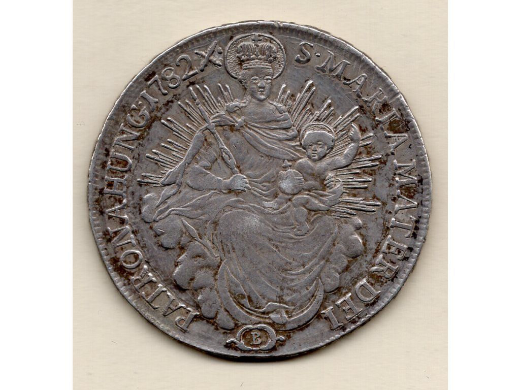 Tato půltolarová mince z období vlády císaře Josefa II. (1780–1790) vznikla v roce 1782 v uherské mincovně Kremnica (značka B). Ražba je věnována tradičnímu ikonografickému motivu Svaté Marie – Patronky Uherska, který byl v habsburské monarchii dlouhodobě oblíbený pro svůj duchovní a ochranný význam.