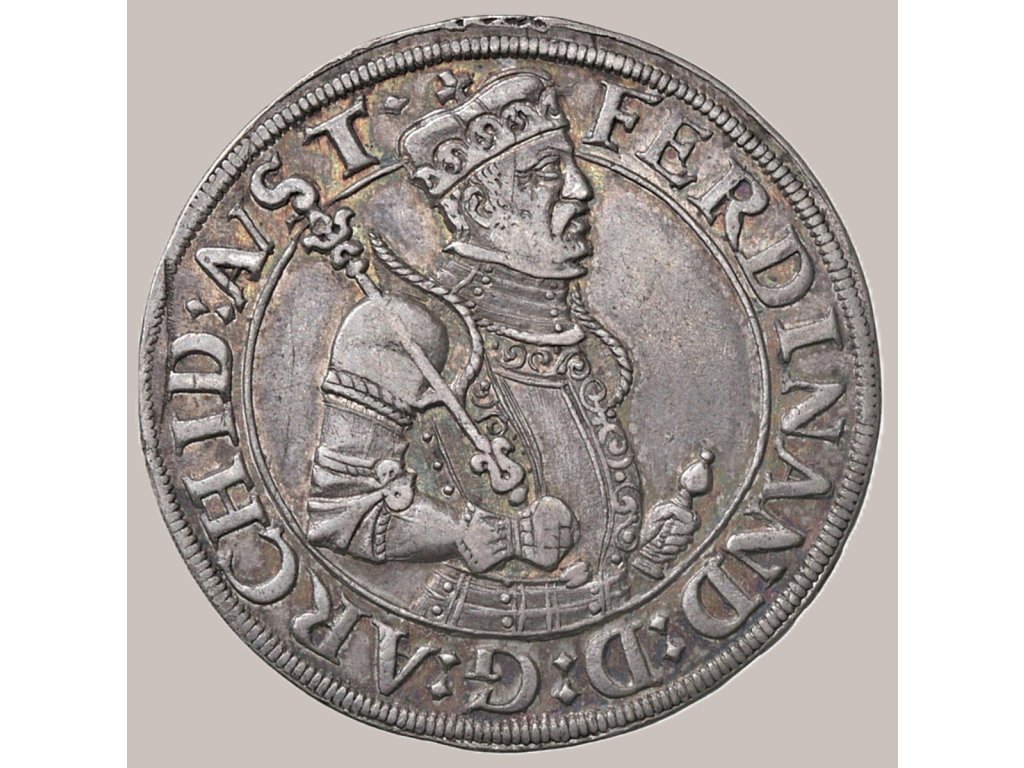 Ferdinand I., mladší bratr císaře Karla V., vládl jako český a uherský král a později jako císař Svaté říše římské. Jeho půltolary z Hallske mincovny patří k nejznámějším emisím počátků habsburské dominance ve střední Evropě. Ražba nese charakteristické rysy renesančního portrétu – panovník v brnění s korunou a žezlem, což symbolizuje jeho vojenskou i politickou sílu.