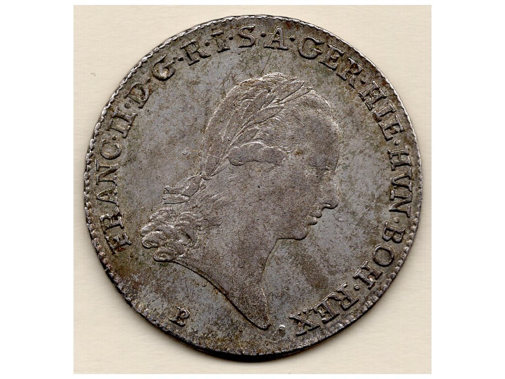 Tato čtvrtina Kronenthaleru byla ražena v roce 1793 v kremnické mincovně (značka B) za vlády císaře Františka II., posledního císaře Svaté říše římské. Averz mince nese portrét císaře s věncem a legendu FRANC·II·D·G·R·I·S·A·GER·HIE·HVN·BOH·REX, která odkazuje na jeho tituly jako římského císaře, uherského a českého krále. Reverz znázorňuje složitý heraldický motiv s třemi korunami, plameny a insigniemi Řádu zlatého rouna, obklopený nápisem ARCH·AVST·DVX·BURG·LOTH·BRAB·COM·FLAN·1793. Mince byla ražena ze stříbra o ryzosti 0,873, s hmotností cca 7,36 g. Výjimečně ostré detaily a typický motiv Habsburských Nizozemí z ní dělají oblíbený exemplář pro specializované sběratele rakousko-nizozemských ražeb. Nese všechny znaky soudobé propagandy moci a legitimity dynastie Habsburků.