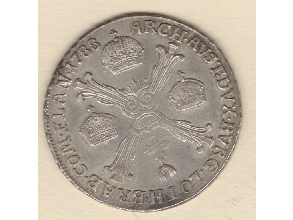 Tento stříbrný čtvrt tolar (1/4 thaler) byl ražen roku 1788 v německé mincovně Günzburg (značka H), která tehdy spadala pod správu Habsburků. Na lícové straně je zobrazen císař Josef II. s vavřínovým věncem, doprovázený nápisem IOSEPH II D G R I S A GER HIE HVN BOH REX, tedy: Josef II., z Boží milosti římský císař, král německý, uherský a český.