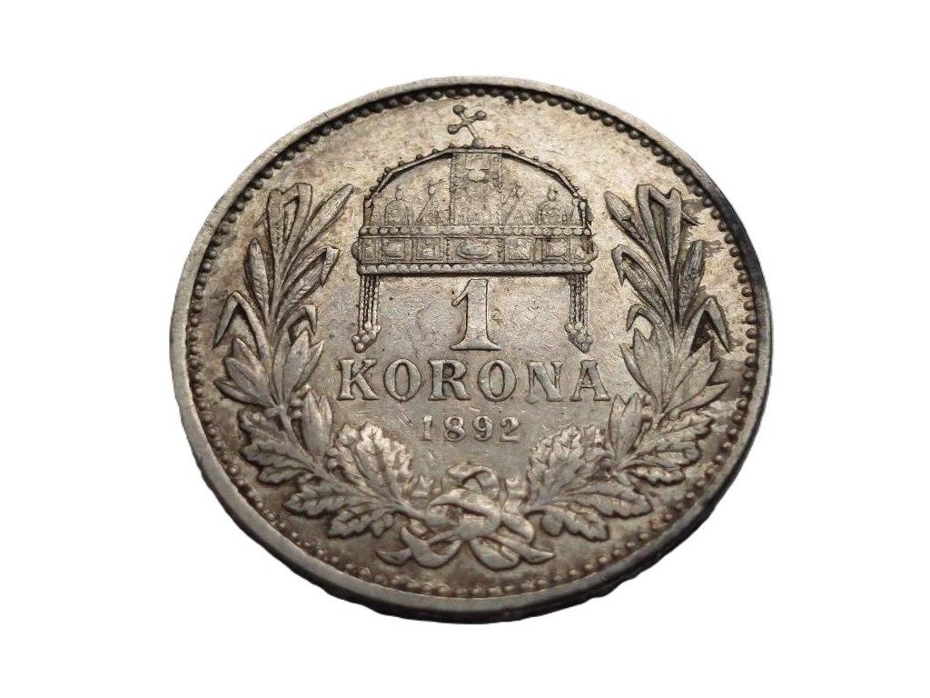 Tato uherská koruna z roku 1892 nese portrét císaře Františka Josefa I., který vládl rakousko-uherské monarchii více než šedesát let. Mince byla ražena během dramatických válečných let první světové války a reprezentuje poslední etapu existence habsburské říše. Na lícní straně je vyobrazen panovník s vavřínovým věncem a nápisem ve starouherské variantě maďarštiny, rub zdobí uherská svatoštěpánská koruna obklopená vavřínovým věncem.