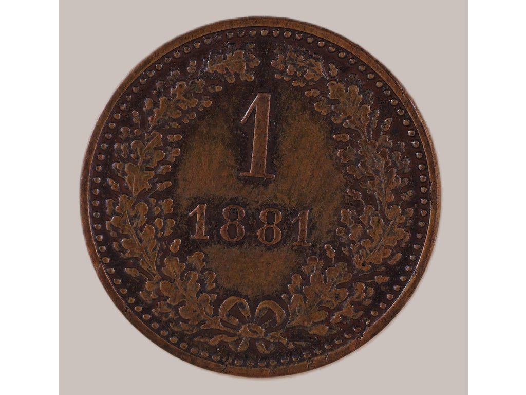 Na líci mince se nachází dvouhlavý orlový znak Rakouského císařství s korunou a nápisem K. K. ÖSTERREICHISCHE SCHEIDEMÜNZE („Císařská rakouská drobná mince“). Reverz zobrazuje hodnotu „1“ obklopenou dubovým věncem a letopočet 1881. Tato drobná měděná mince představovala základní nominál tehdejšího měnového systému a byla určena pro každodenní platby v rámci celého impéria.