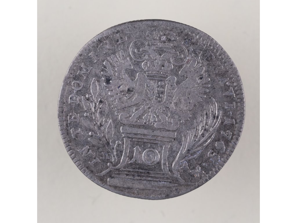 Revers zobrazuje dvouhlavého císařského orla s korunou, na jehož prsou je erb rodu Habsburků-Lotrinských. V opisu se nachází zbožný nápis “IN TE DOMINE SPERAVI” („V tebe, Pane, doufám“) a letopočet 1765. Pod orlem je uveden nominál 10 a značka mincovny HA pro Hall v Tyrolsku. Tento motiv symbolizuje spojení duchovní moci, víry a císařské autority v době vrcholného osvícenského absolutismu.