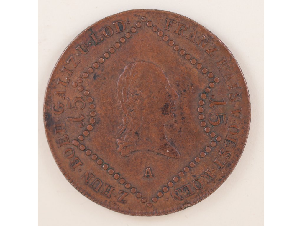 Mince je ražena z mědi s hmotností 15,01 g a průměrem 35,1 mm. Byla součástí reformního měnového systému, který nahradil znehodnocenou měnu napoleonského období. Tento 15krejcar patří mezi významné ražby raného Rakouského císařství a odráží úsilí o obnovu důvěry v peněžní oběh i o stabilizaci hospodářství po letech válek. Dnes je ceněn nejen pro svou velikost a detaily, ale i jako symbol nové éry habsburského panství.