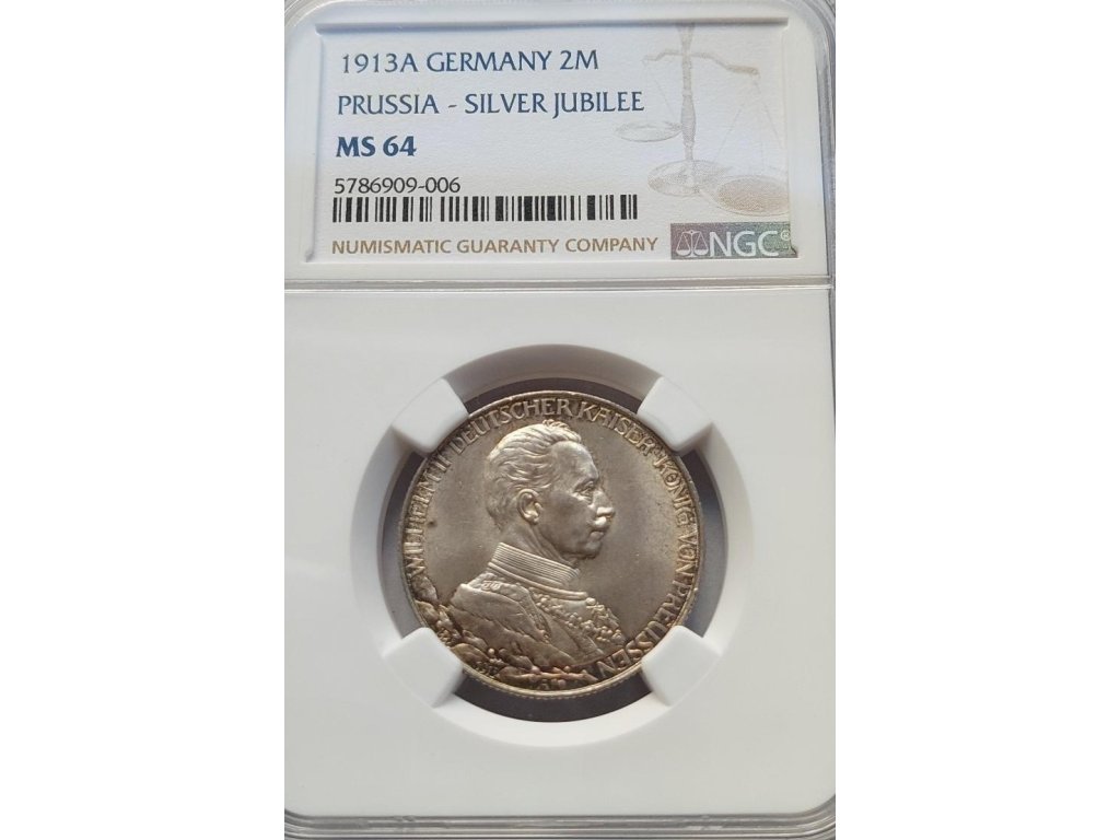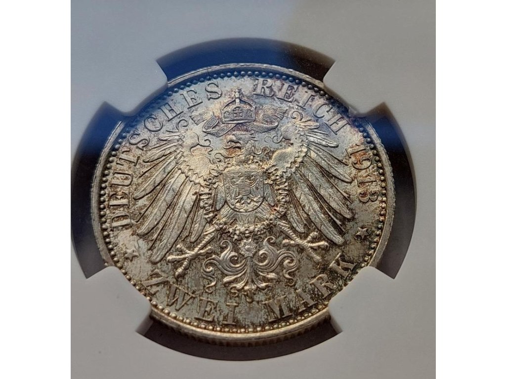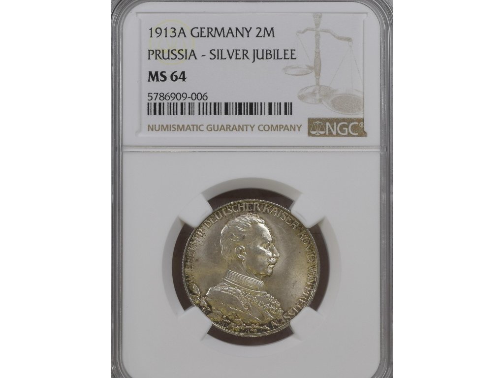 2 Mark 1913 D Vilém II. Prusko NGC MS 64