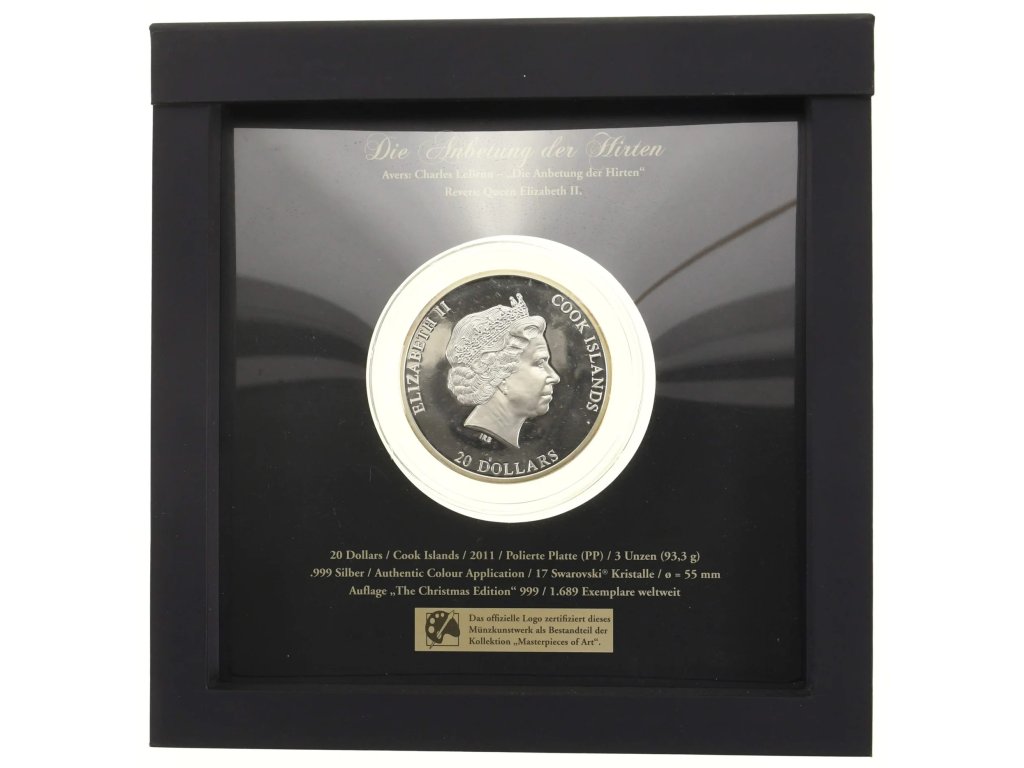 20 $ Cookovy ostrovy 2011 – Charles Le Brun – Klanění pastýřů, 3 oz stříbra, Masterpieces of Art