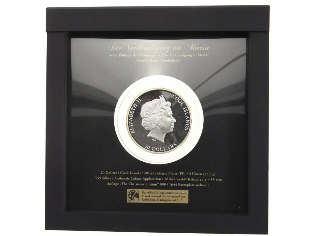20 $ Cookovy ostrovy 2014 – Philippe de Champaigne – Zvěstování Marii, 3 oz stříbra, Masterpieces of Art