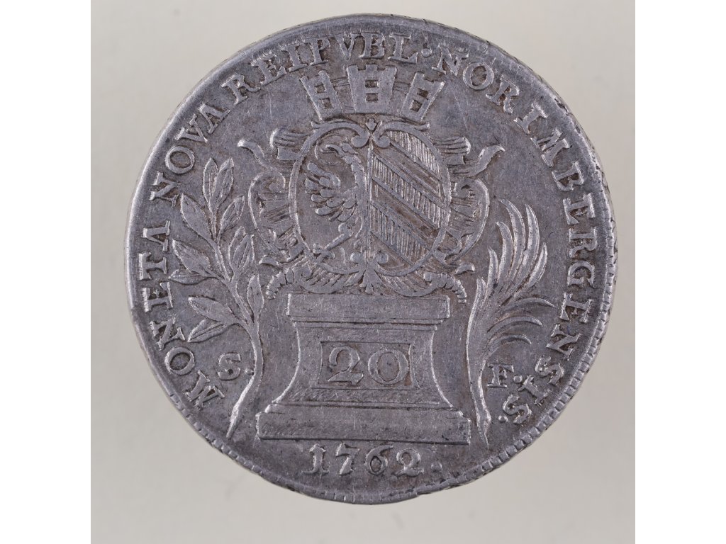 Na líci mince je vyobrazen císař v antikizující zbroji s opisem FRANCISCUS D. G. ROM. IMP. SEM. PER. AUG., což v překladu znamená „František, z Boží milosti římský císař, vždy rozmnožitel říše“. Rubová strana zobrazuje norimberský městský znak – orlici a kosočtverečný štít – na ozdobném podstavci s hodnotou „20“, lemovaný větvičkami. Nápis MONETA NOVA REIPUBL. NORIMBERGENSIS odkazuje na minci městské republiky Norimberk. Letopočet 1762 se nachází v dolní části mince.