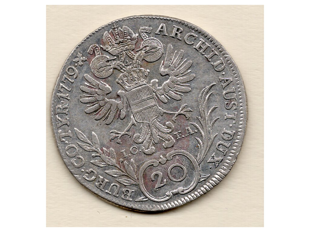 Tento stříbrný 20krejcar byl vyražen roku 1778 za vlády císařovny Marie Terezie (1740–1780), jedné z nejvýznamnějších panovnic habsburské monarchie. Averz nese její portrét s opisem M. THERESIA D. G. R. IMP. HU. BO. REG., který zdůrazňuje její vládu nad rozsáhlými zeměmi střední Evropy. Reverz zobrazuje dvouhlavého orla s korunou a středovým štítem, obklopeného hodnotou „20“ a iniciálami mincmistrů IC–FA, potvrzujícími vídeňskou ražbu.