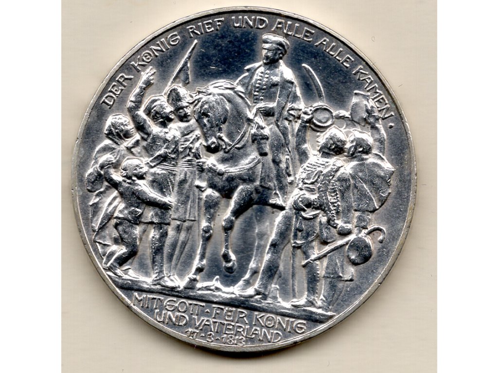 V roce 1913 vydalo Pruské království pamětní minci o hodnotě 3 marky k připomenutí sto let od roku 1813, kdy německé státy v čele s Pruskem povstaly proti Napoleonovi. Hlavní strana mince nese dramatický výjev krále Friedricha Viléma III. na koni, obklopeného nadšenými dobrovolníky všech vrstev – od civilistů po vojáky – a nese heslo: „Der König rief und alle alle kamen“ („Král zavolal a všichni, všichni přišli“).