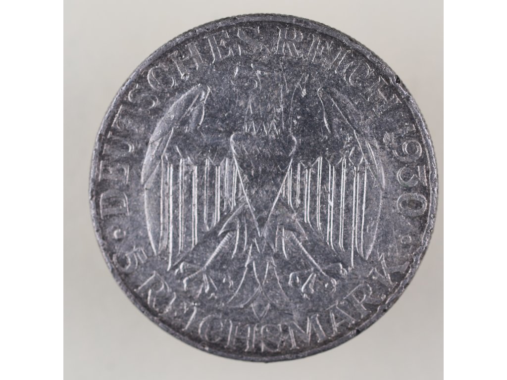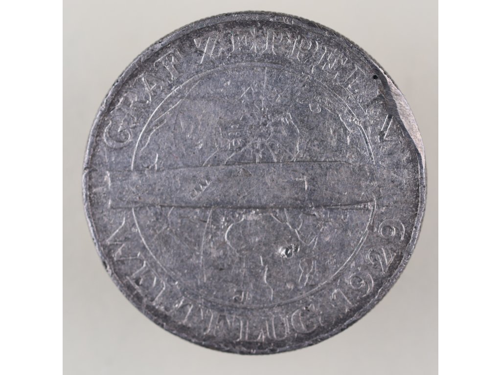 Tato stříbrná pamětní 5marka z roku 1930 byla vydána Německem na počest úspěšné cesty vzducholodi LZ 127 Graf Zeppelin kolem světa v roce 1929. Let, který trval 21 dní a zahrnoval návštěvy Japonska, Spojených států i SSSR, představoval technologický i logistický triumf tehdejšího Německa. Mince nese na reversu vzducholoď v letu nad mapou světa, zatímco na líci dominuje říšský orel a nápis Deutsches Reich. Značka „J“ značí ražbu v hamburské mincovně. Složení ze stříbra o ryzosti 500/1000 a hmotnost přes 25 gramů dodává minci výraznou hmotnost a hodnotu. Graf Zeppelin patří mezi ikonické motivy německé numismatiky a je velmi vyhledávaný nejen pro svou historii, ale i omezený počet vyražených kusů. Autentický sběratelský kousek, který připomíná dobu, kdy se svět díval vzhůru k nebi s obdivem k technickému pokroku.