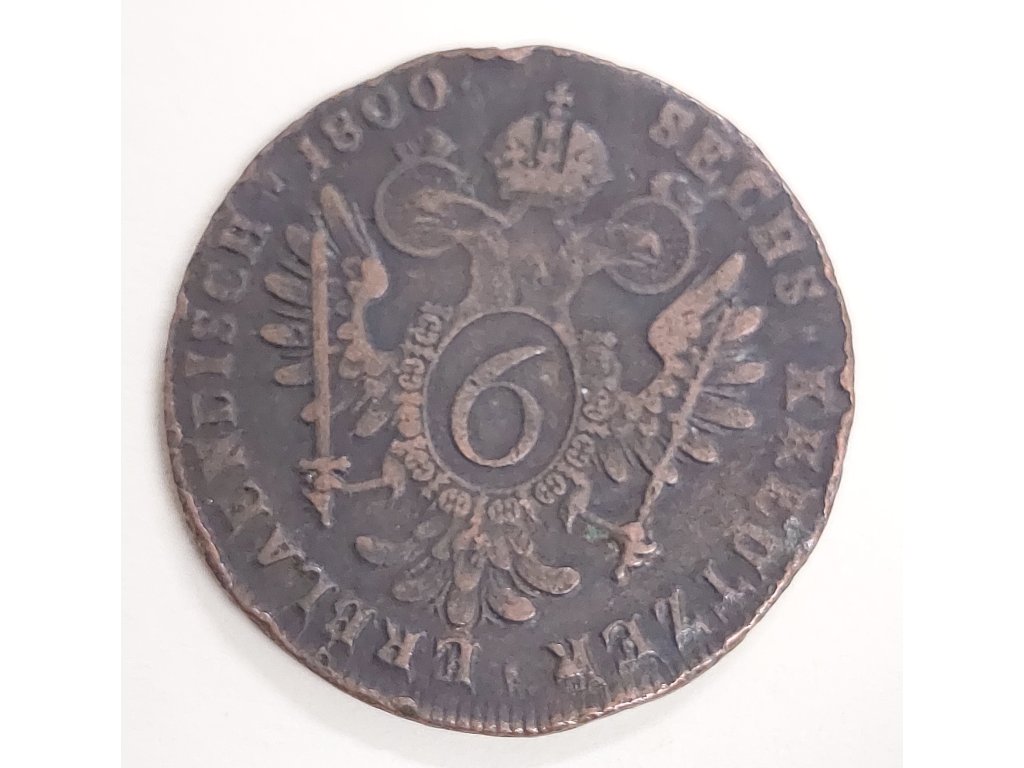 Tato rakouská měděná mince v hodnotě 6 krejcarů byla vyražena v roce 1800 v mincovně Kremnici (značka „B“) za vlády Františka II., posledního císaře Svaté říše římské. Smolník, ležící v Horních Uhrách (dnes Slovensko), byl v té době významným centrem měděné mincovní produkce.