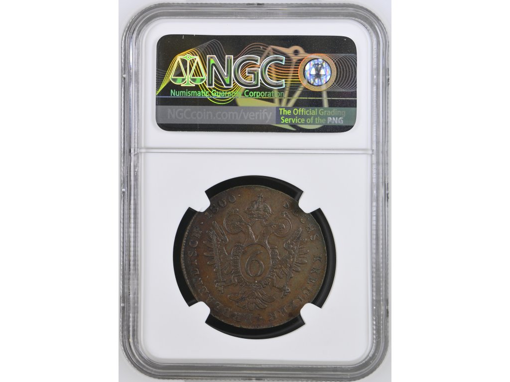 Mince je atraktivní nejen svým zasazením do dynamické éry přelomu 18. a 19. století, ale také tím, že umožňuje sběrateli doplnit ucelený kontext měnového vývoje habsburských zemí. Zachovalost certifikovaná společností NGC ve stupni AU 55 BN garantuje její autenticitu a nadprůměrný stav dochování, který u měděných ražeb z této doby nebývá samozřejmostí.