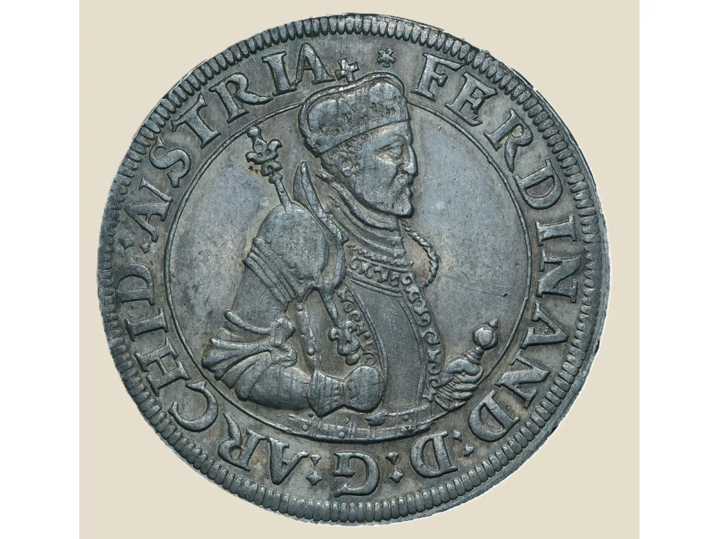 Tento stříbrný tolar byl ražen v Tyrolsku za vlády arcivévody Ferdinanda II. (*1529–1595*), syna císaře Ferdinanda I. a významného představitele vedlejší tyrolské linie Habsburků. Ražba pochází z mincovny v Hallu, která byla jedním z nejdůležitějších center mincovnictví střední Evropy v 16. století.