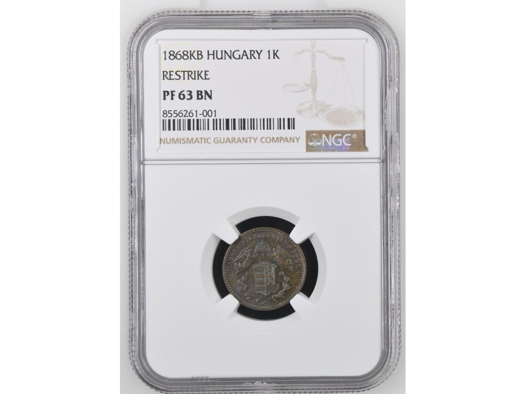 Certifikace NGC PF 63 BN garantuje vysokou kvalitu novoražby v proof provedení, s decentní patinou a velmi dobrým zachováním detailů. Označení BN (Brown) se vztahuje k přirozenému zabarvení měděného povrchu. Atraktivní volba pro milovníky uherské numismatiky i sběratele certifikovaných restrikcí.