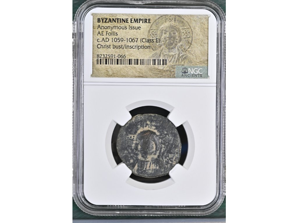 Anonymní byzantské emise 11. století představují jedinečný fenomén středověkého mincovnictví. V tomto období se na mincích neobjevuje jméno ani portrét vládnoucího císaře, ale ústředním motivem je postava Krista. Třída E, datovaná přibližně do let 1059–1067, spadá do éry, kdy Byzantská říše čelila vnitřním mocenským zápasům i rostoucímu tlaku na hranicích.