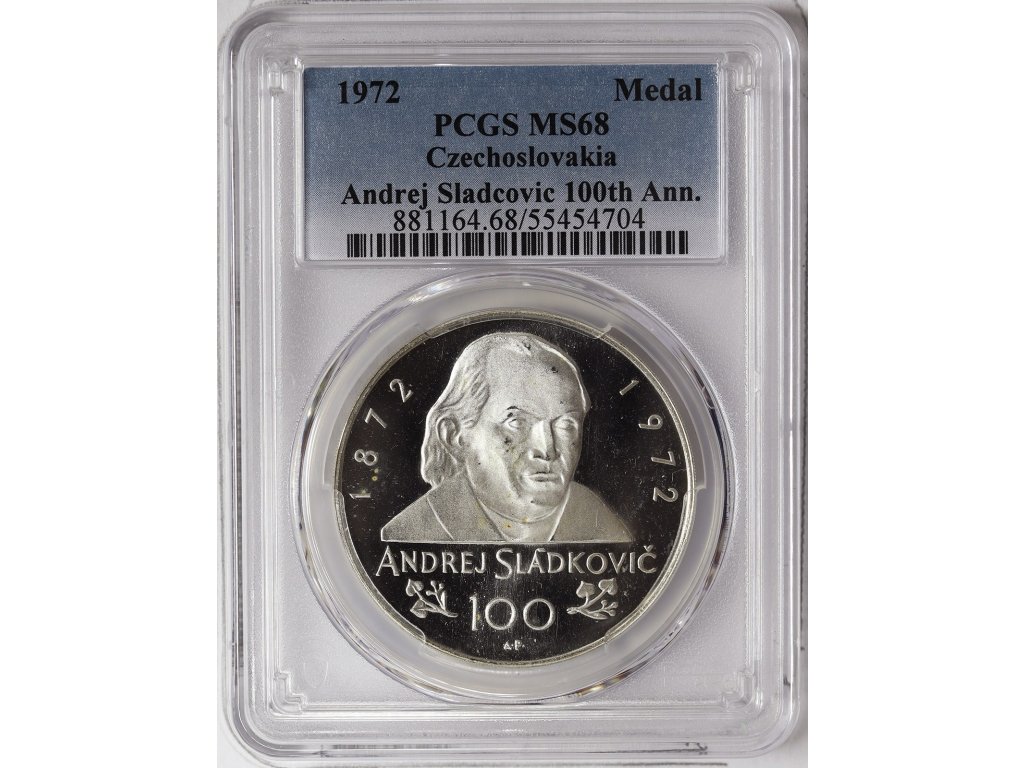 Československo – stříbrná medaile Andrej Sládkovič, 1972, MS 68 (varianta proof)