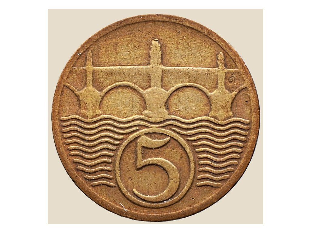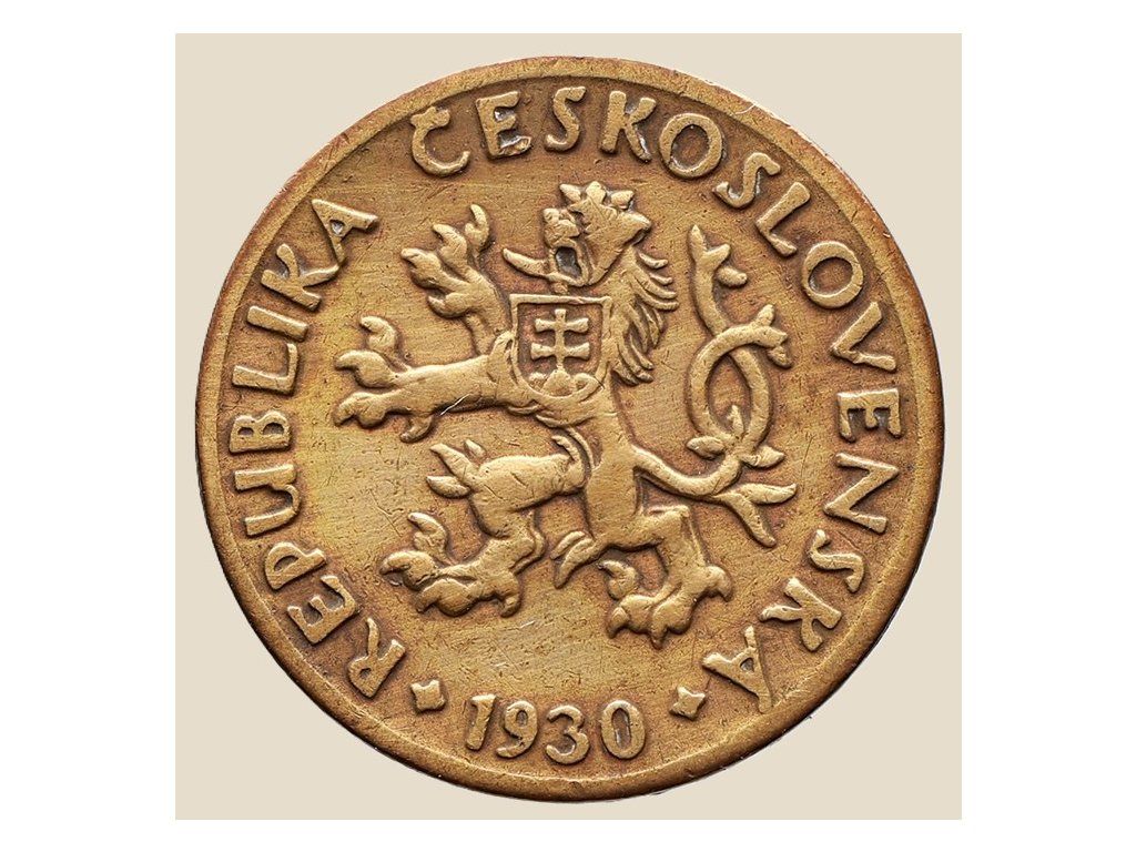 Tento 5haléř z roku 1930 je typickým příkladem drobné měny první Československé republiky, ražené v letech 1923–1938. Averz zobrazuje státní znak se slovenským křížem na hrudi českého lva a opisem REPUBLIKA ČESKOSLOVENSKÁ. Reverz nese vyobrazení Karlova mostu s vlnící se hladinou Vltavy a nominální hodnotou „5“. Tento design symbolizoval spojení historické Prahy s novým státem vzniklým po rozpadu Rakouska-Uherska. Mince je z mosazi (92 % Cu, 8 % Zn), váží 1,70 g, má průměr 16,2 mm a tloušťku 1 mm. Byla oficiálně vydána 10. srpna 1923 a z oběhu stažena 30. prosince 1942. Dnes je vyhledávaná nejen pro svou historickou hodnotu, ale i pro výrazný výtvarný motiv, který odkazuje na české kulturní dědictví.