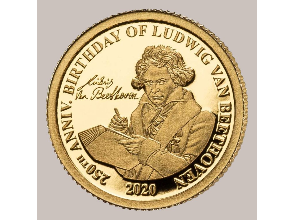 Fidži – Zlatá pamětní mince 1 Dollar 2020 „250. výročí narození Ludwiga van Beethovena“