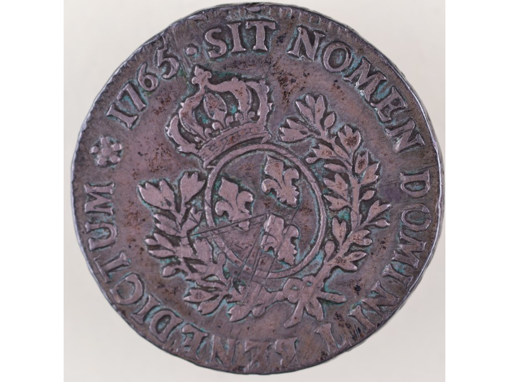 Tento stříbrný 1 écu byl ražen v roce 1765 za vlády francouzského krále Ludvíka XV. (1715–1774), jednoho z nejdéle vládnoucích monarchů v historii Francie. Mince pochází z mincovny v Bayonne, jak dokládá značka pod portrétem panovníka. Jedná se o typický exemplář velkých stříbrných mincí francouzského království před Velkou francouzskou revolucí.