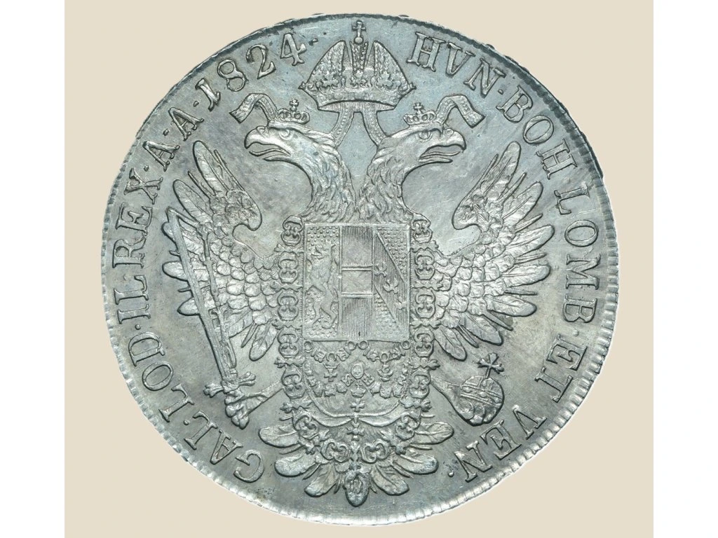 Stříbrný tolar z roku 1824 je reprezentativní ukázkou mincovní politiky Rakouského císařství za vlády Františka I., který vládl v letech 1792–1835. Tento typ mince, označovaný jako Conventionsthaler, byl standardizován pro mezinárodní obchod a obíhal nejen v monarchii, ale i v zahraničí.