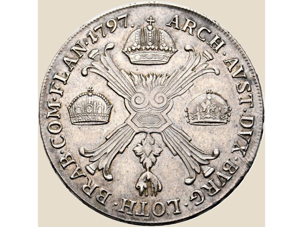 Tento stříbrný tolar z roku 1797 byl ražen v mincovně Günzburg, což dokládá značka „H“ pod portrétem. Jedná se o období vlády Františka II., posledního císaře Svaté říše římské. Po roce 1804 se stal prvním císařem rakouským a přijal jméno František I. Rakouský. Tato mince tak pochází z přelomové doby, kdy se Evropa připravovala na zásadní politické a vojenské změny.
