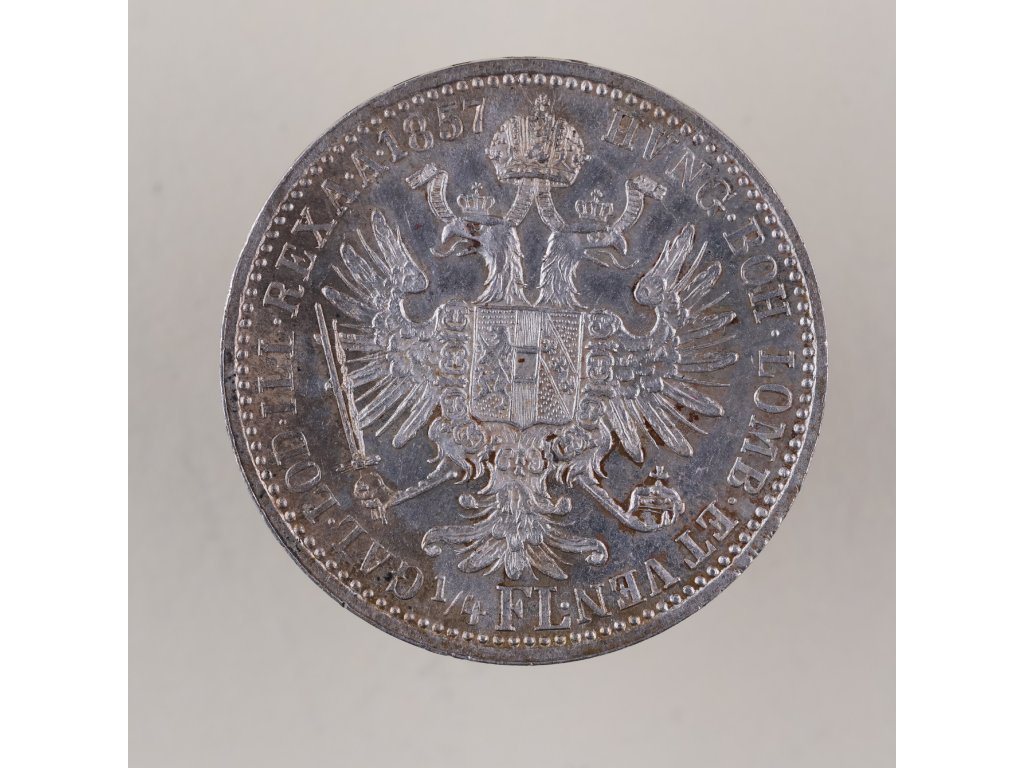 Na líci je vyobrazen mladý portrét císaře s vavřínovým věncem a opisem FRANC·IOS·I·D·G·AVSTRIAE·IMPERATOR. Pod bustou se nachází písmeno A, značka Vídeňské mincovny. Rubová strana nese dvouhlavého orla s korunou a znakem monarchie, kolem opis s tituly panovníka a letopočtem 1857. Uprostřed je vyznačena hodnota 1/4 FL.