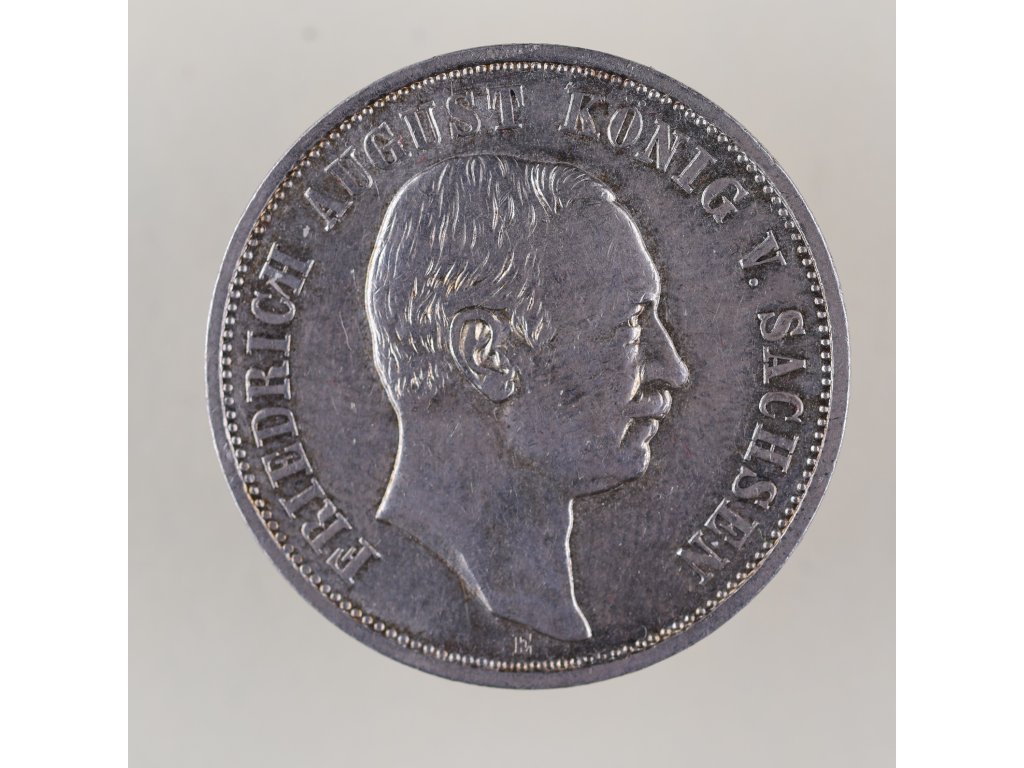 Tato třímarka o hmotnosti 16,59 g a průměru 33 mm patří mezi klasické oběžné mince saského království v rámci Německé říše. Dnes je ceněna jako atraktivní historický exemplář dokládající konec monarchistické éry v Německu i vysokou úroveň tehdejšího mincovnictví.