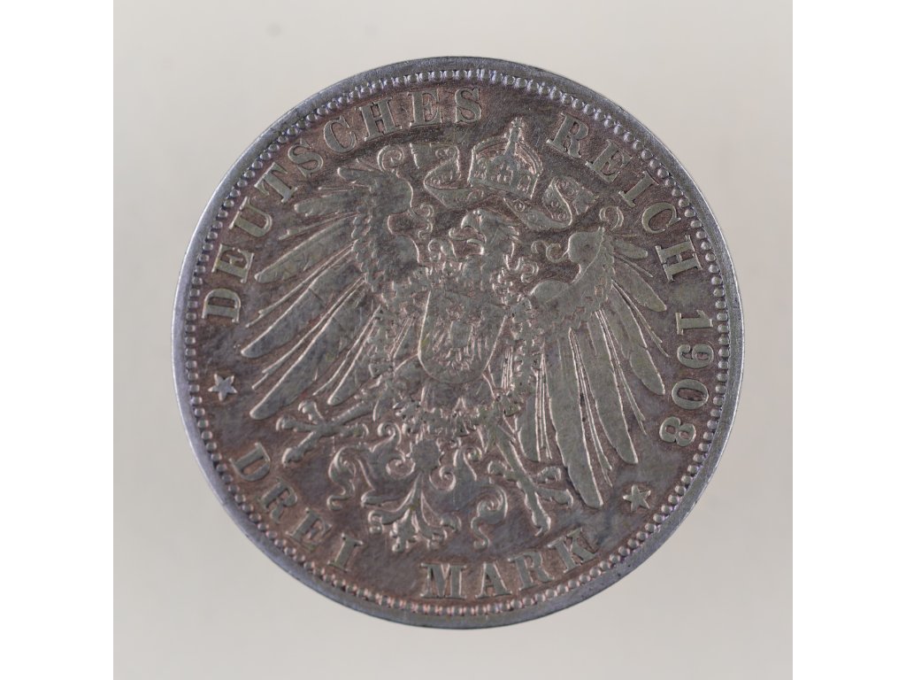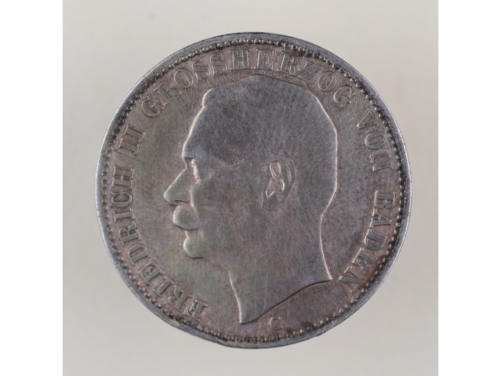 Fridrich II., velkovévoda bádenský, vládl v letech 1907–1918 a patřil k moderním evropským panovníkům na přelomu století. Jeho vláda probíhala v období vrcholného rozvoje Německé říše, kterou charakterizoval hospodářský růst, průmyslová síla a kulturní sebevědomí. Bádensko, jako jeden z významných členů říšské federace, razilo vlastní mince s portrétem panovníka, které měly plnohodnotný oběhový status v celé říši.