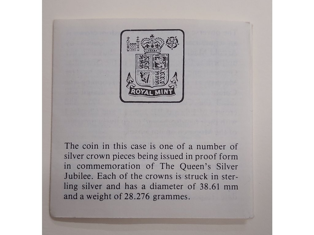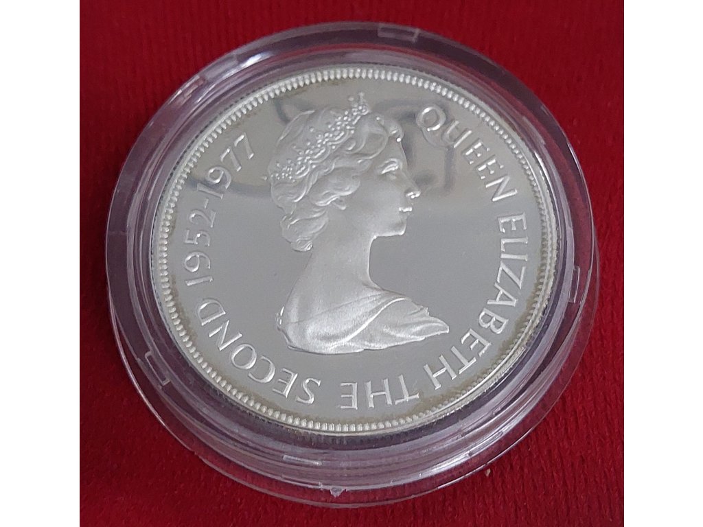 Tato mince byla vydána jako neoběžná pamětní emise a navazuje na tradiční formát korunových mincí, které byly po desetiletí využívány pro významná jubilea a státní výročí. Proof provedení podtrhuje slavnostní charakter celé emise a odpovídá důrazu, který byl v roce 1977 kladen na reprezentaci monarchie a její historické kontinuity.