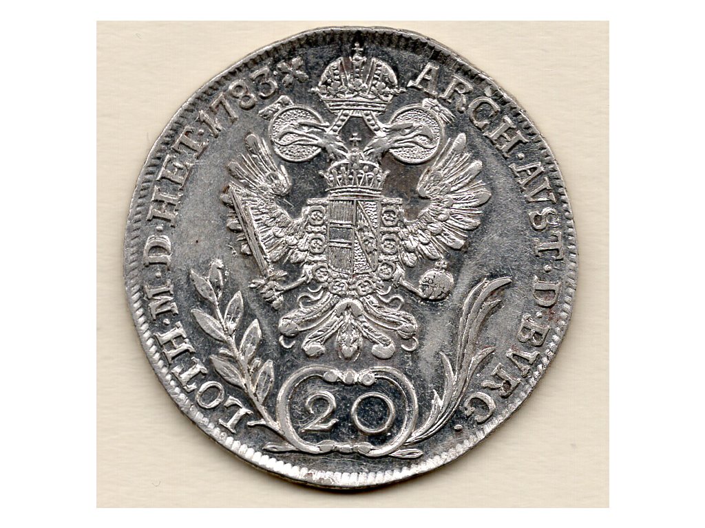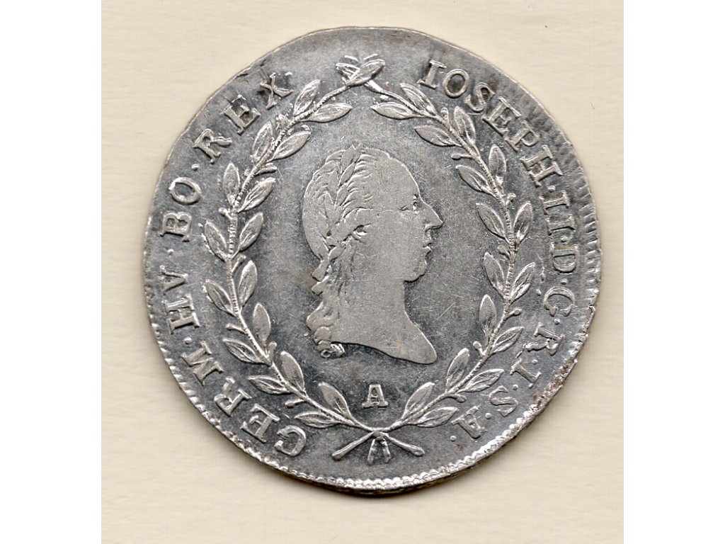 Nominál 20 krejcarů odpovídal jedné třetině tolaru a byl běžně používán v každodenním peněžním styku. Sloužil k úhradě menších i středních plateb a tvořil důležitý mezičlánek měnového systému založeného na guldenu a tolaru. Emise z roku 1783 spadá do pozdní fáze Josefovy vlády, kdy byly reformní zásahy již pevně zakotveny v praxi.