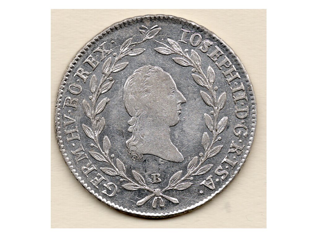 Dvacetikrejcar byl standardním stříbrným nominálem určeným pro každodenní platební styk. V uherských zemích byl znám jako krajczár a odpovídal jedné třetině zlatého. Tento typ mince je charakteristický důrazem na panovnickou titulaturu a státní symboliku, což odpovídá snaze Josefa II. zdůraznit jednotu a autoritu mnohonárodnostní monarchie.