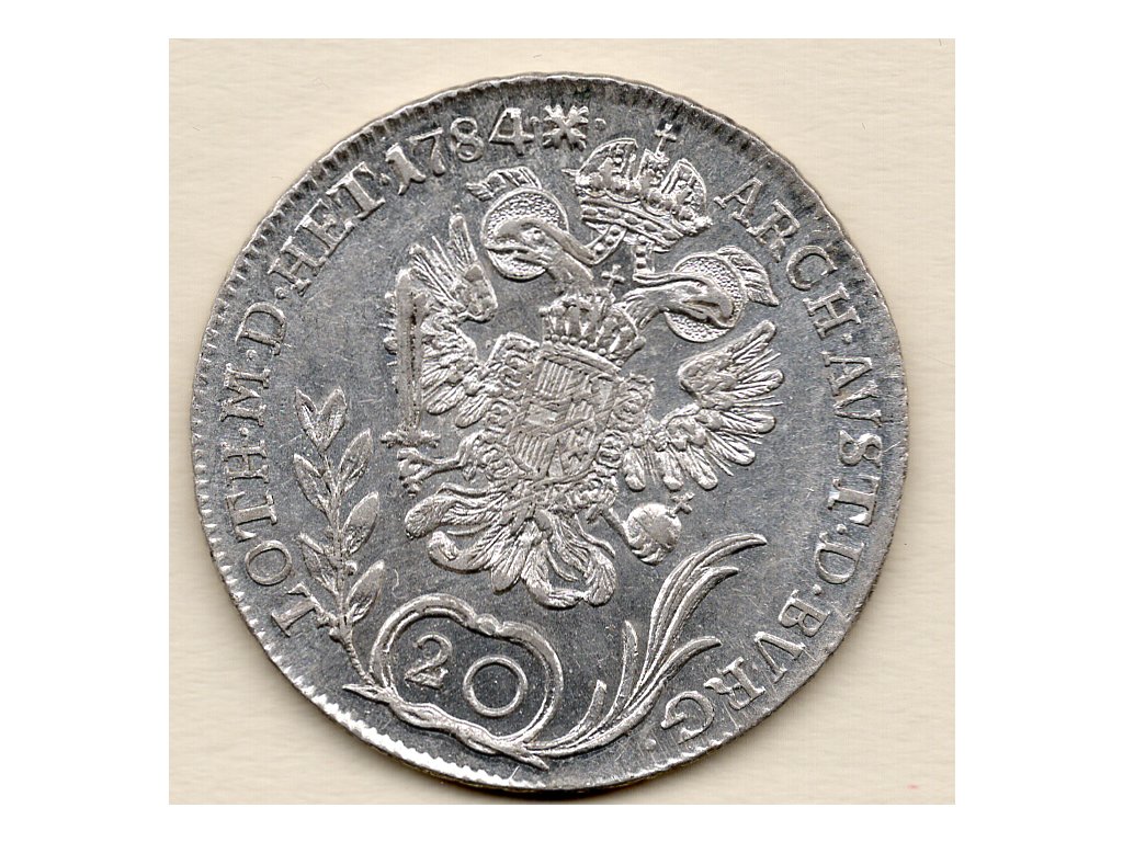 Stříbrný dvacetikrejcar císaře Josefa II. z roku 1784 pochází z produkce kremnické mincovny, jednoho z nejvýznamnějších mincovních center habsburské monarchie. Mince představuje běžnou oběhovou ražbu Uherského království z období osvícenských reforem druhé poloviny 18. století.
