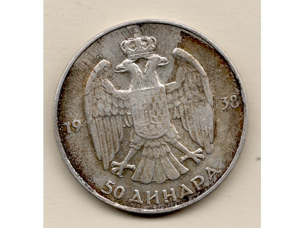 Tato stříbrná mince v nominální hodnotě 50 dinárů byla vydána Jugoslávií v roce 1938, tedy v období vlády krále Petra II., posledního jugoslávského monarchy. Petr II. nastoupil na trůn již jako nezletilý v roce 1934 po atentátu na svého otce Alexandra I., a vládl až do roku 1945, kdy byla monarchie po válce definitivně zrušena.