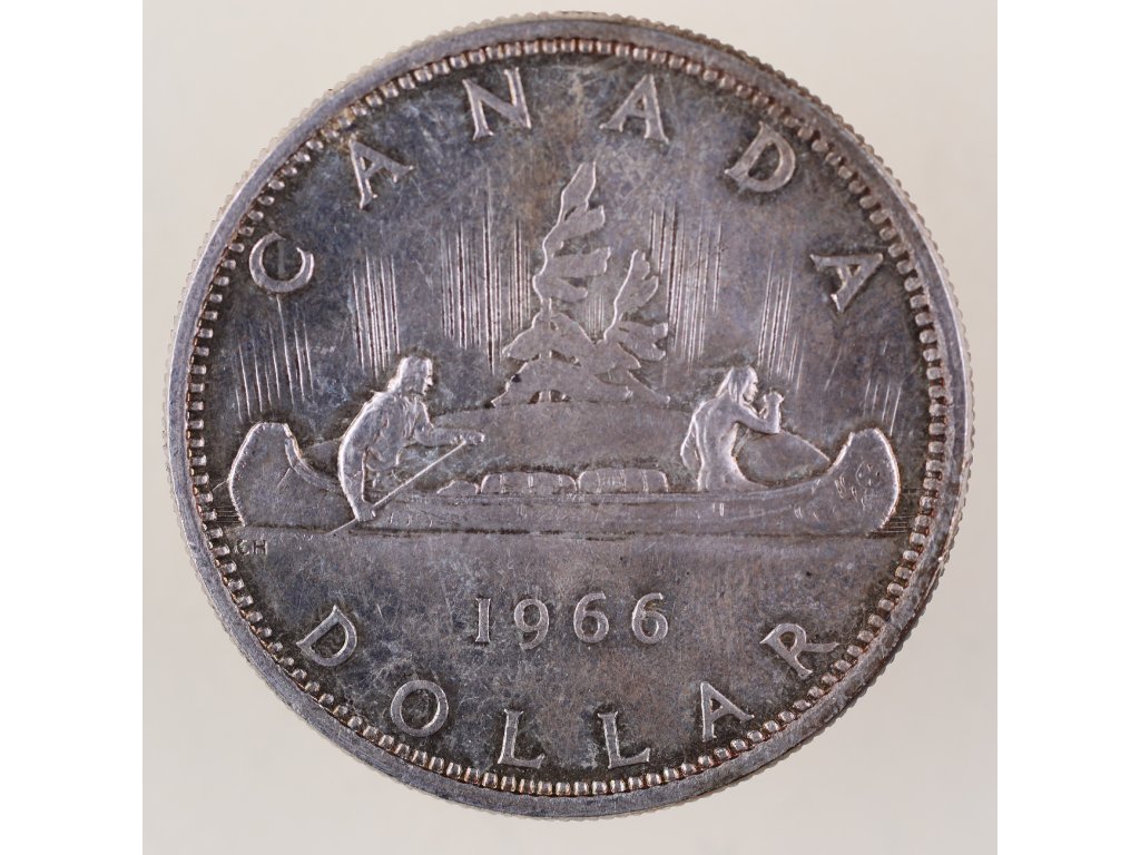 Dolar z roku 1966 byl vyražen z mincovní slitiny obsahující 80 % stříbra, s hmotností 23,2 g. Jedná se o jednu z posledních sérií kanadských oběžných dolarů s obsahem drahého kovu, neboť od přelomu 60. a 70. let přešla Kanada na ražbu z běžných kovových slitin. Právě proto je ročník 1966 vyhledáván sběrateli i investory, jelikož kombinuje historický význam s obsahem stříbra.