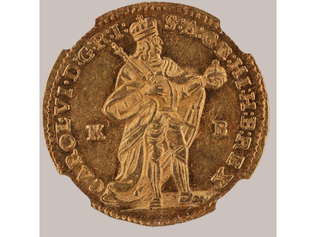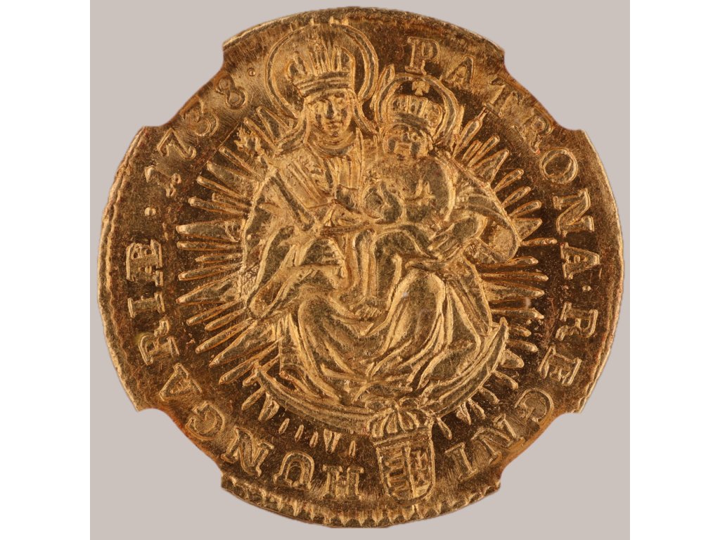 Dukáty Karla VI. patří mezi nejvyhledávanější exempláře habsburské mincovní produkce. Mince z roku 1738 s vyobrazením císaře v korunovačním rouchu a s královskými insigniemi žezla a jablka odkazuje na legitimitu a božské posvěcení panovníkovy vlády. Reverz se symbolikou Panny Marie, tradiční ochránkyně Uher, zdůrazňuje náboženský rozměr habsburské ideologie a spojení císařské moci s katolickou vírou.
