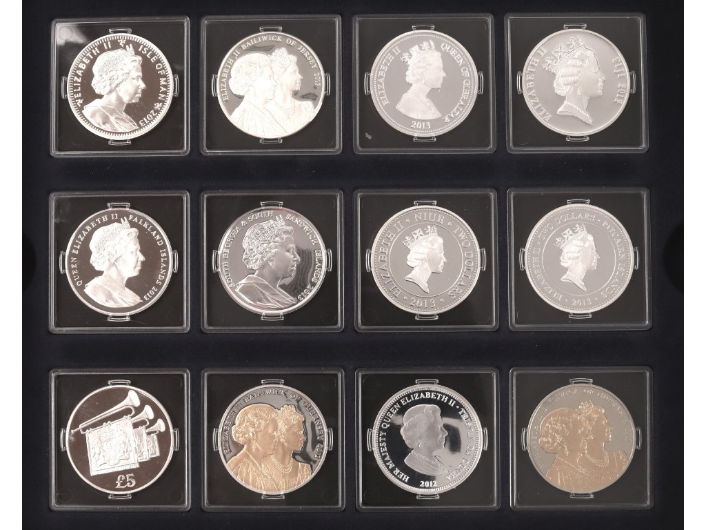 Mince emitovaly různé britské zámořské teritoria a státy Commonwealthu – například Jersey, Guernsey, Isle of Man, Niue, Ascension nebo Falklandy. Jejich výjevy zachycují zásadní momenty panovničina života, od korunovace až po významné jubilejní oslavy. Kolekce tak spojuje numismatickou hodnotu s dokumentací moderních dějin britské monarchie.