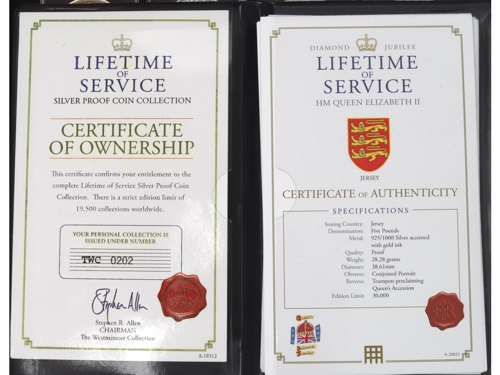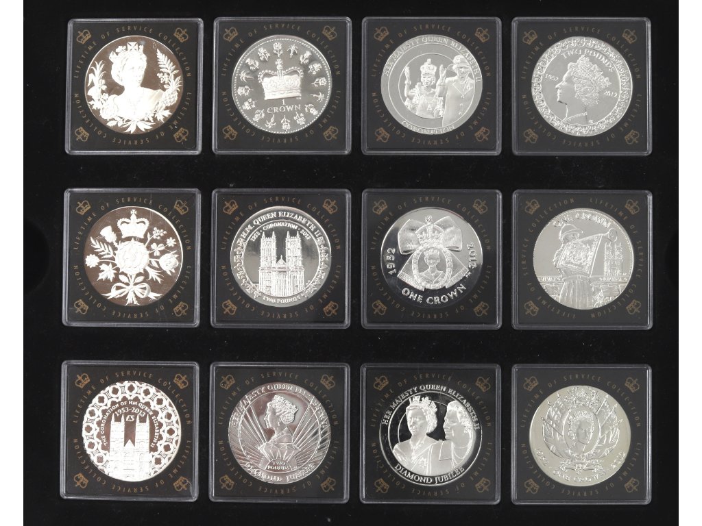 Soubor s názvem Lifetime of Service obsahuje 24 stříbrných mincí ražených v letech 2012–2013. Každá mince byla vyrobena ze stříbra o ryzosti 925/1000, s hmotností 28,28 g a v kvalitě Proof. Jedna z mincí je navíc zušlechtěna pozlacením, což dodává celé kolekci reprezentativní charakter. Celková hmotnost stříbra ve sbírce činí 650,44 g.