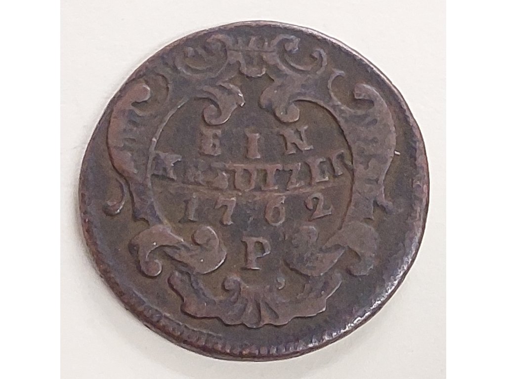 Krejcar představoval 1/60 zlatého (guldenu) a byl základní drobnou mincí každodenního obchodu. Na základě dodaných fotografií je patrný portrét panovnice s opisem a na druhé straně hodnota EIN KREUTZER s letopočtem 1762, zasazená do ozdobného rokokového rámce. Spodní písmeno „P“ označuje pražskou mincovnu, která zajišťovala ražbu pro potřeby českých zemí.