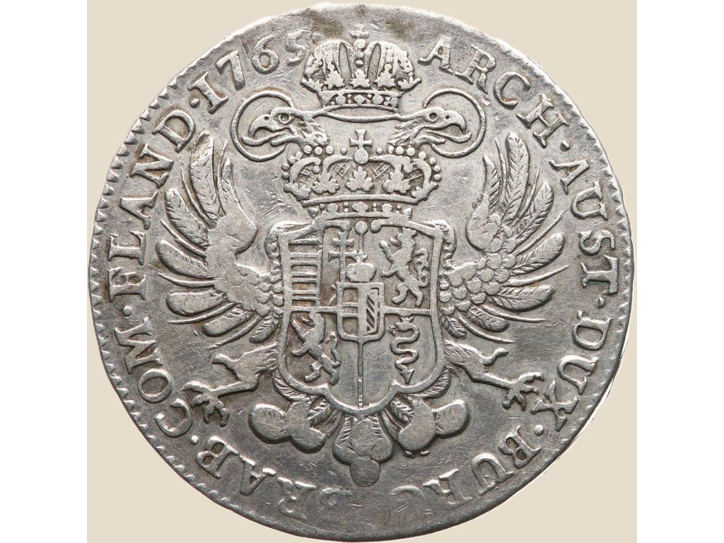 Tento tolar pochází z vlády Marie Terezie (1740–1780), jedné z nejvýznamnějších panovnic habsburské monarchie. Mince byla ražena v Bruselu roku 1765, tedy v době, kdy Habsburkové vládli nejen Rakousku a Uhrám, ale i rozsáhlým državám v dnešní Belgii a Nizozemí. Rok 1765 je zároveň významný tím, že krátce nato se vlády chopil její syn Josef II., čímž začalo období společné vlády matky a syna.