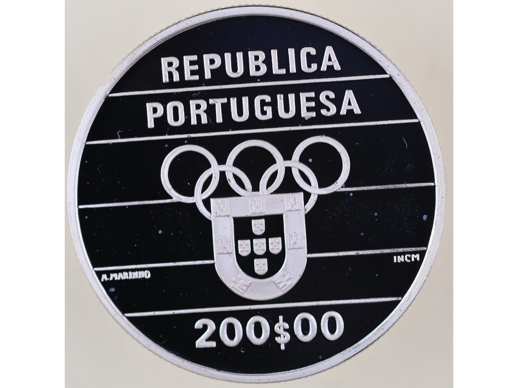V roce 1992 vydala Portugalská republika pamětní emisi ke cti XXV. letních olympijských her v Barceloně, jedné z nejvýznamnějších sportovních událostí konce 20. století. Averz mince zdobí moderně stylizovaná postava sportovce v pohybu s opisem „Jogos Olimpicos 1992“. Reverz nese státní znak Portugalska pod olympijskými kruhy, obklopený nápisem „Republica Portuguesa“ a nominální hodnotou 200$00.