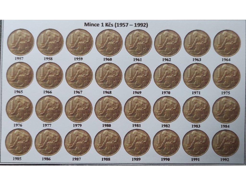 Sbírka Československo – 1 Kčs 1957–1992, téměř kompletní ročníková řada, etue