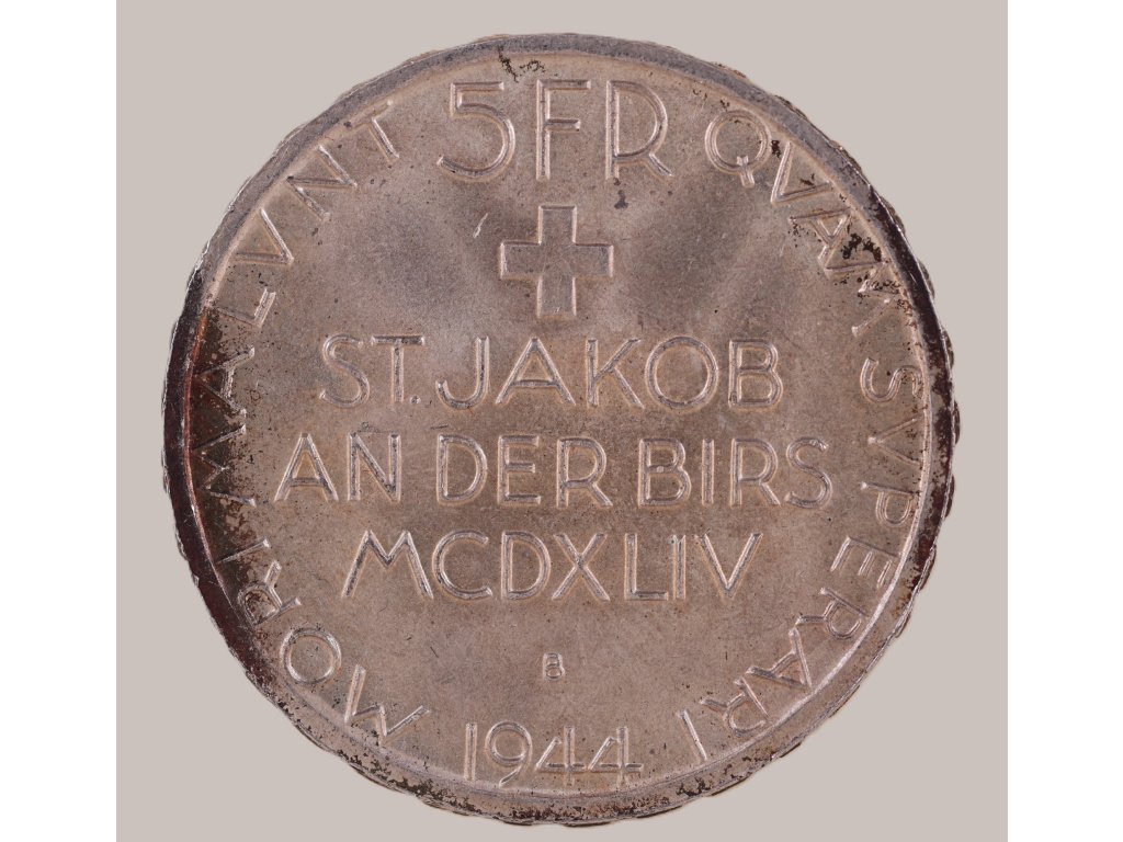 Švýcarsko 5 franků 1944 – 500. výročí bitvy u St. Jakob an der Birs
