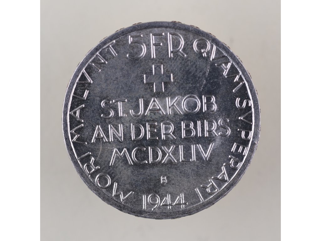 Švýcarsko 5 franků 1944 – 500. výročí bitvy u St. Jakob an der Birs