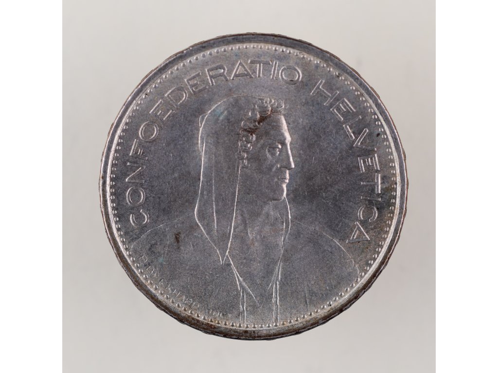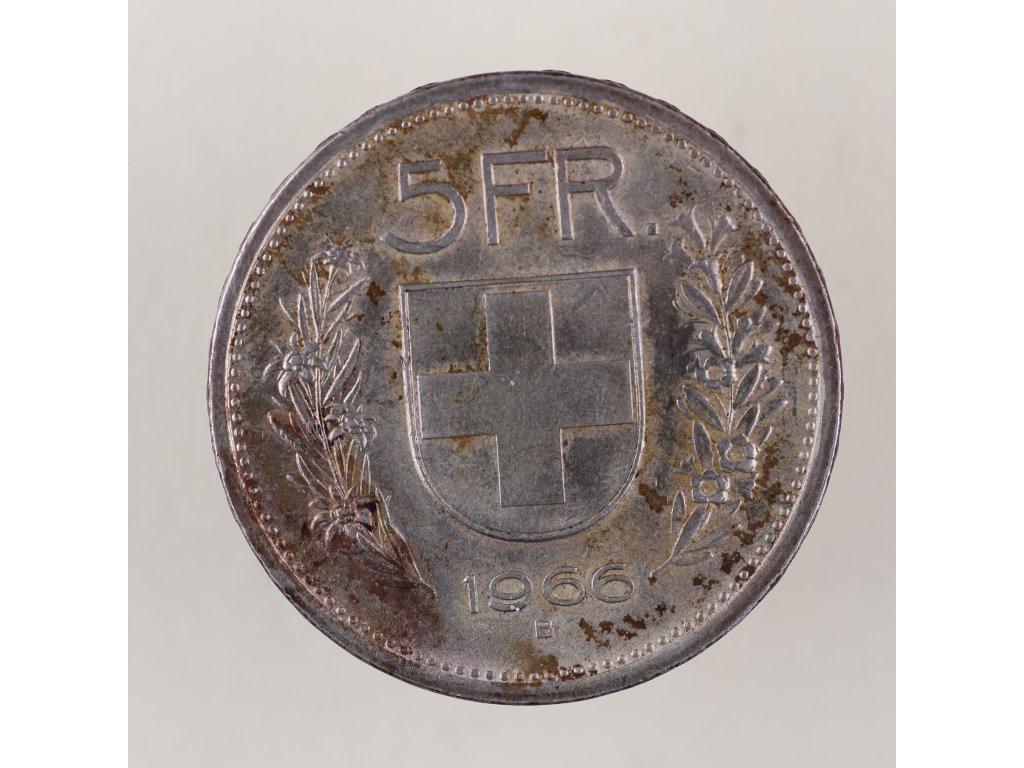 Stříbrná pětifrankovka z roku 1966 představuje tzv. „malý typ“ švýcarské oběžné mince, ražený mezi lety 1931–1969. Autorem ikonického návrhu je švýcarský sochař Paul Burkhard, který vytvořil realistickou podobiznu pastýře s kapucí – často mylně ztotožňovaného s národním hrdinou Vilémem Tellem. Nápis Confoederatio Helvetica označuje oficiální latinský název Švýcarské konfederace.
