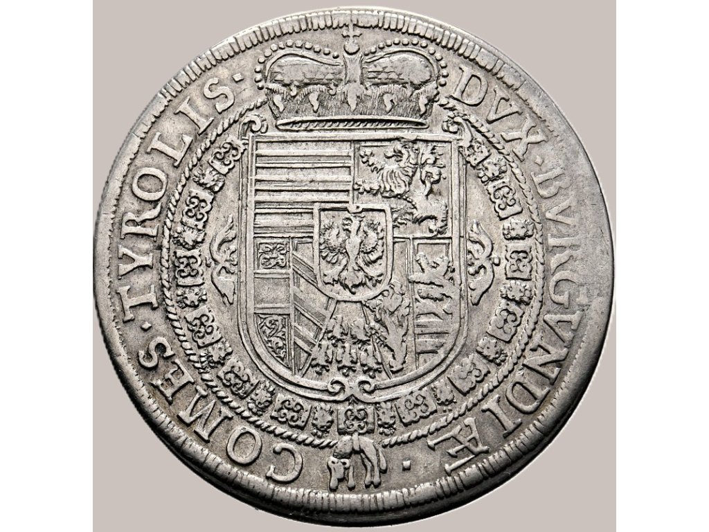 Ferdinand Karel Tyrolský (1628–1662) byl rakouský arcivévoda a hrabě tyrolský, jehož vláda byla obdobím stability a upevnění habsburské moci v alpských zemích. Tolar z roku 1654 nese portrét panovníka v brnění a typický znak habsburské heraldiky – kombinaci říšského orla, českého lva a dalších znaků rodových držav. Hallská mincovna, jedna z nejvýznamnějších v Evropě, byla proslulá kvalitou svých ražeb a dlouhou tradicí výroby tolarů, které se staly základem moderního měnového systému v Evropě.